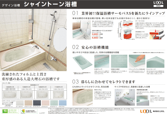 安心です。浴槽のカラーは奥様が選ばれ、ご満足いただけて