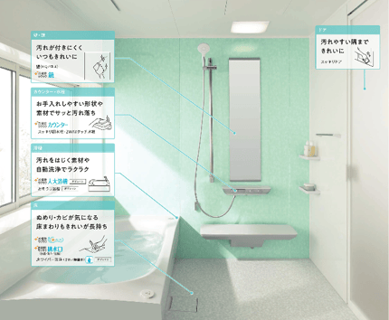 サザナは、お掃除がしやすい浴室になっていますので、いつまでもキレイを保つことができます。
