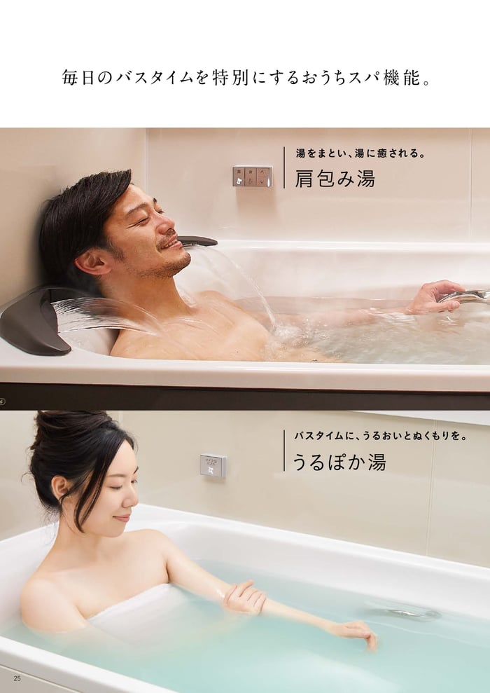 お湯にミクロな泡を加えることで、温泉のような白濁を実現。湯あたりが滑らかになります。