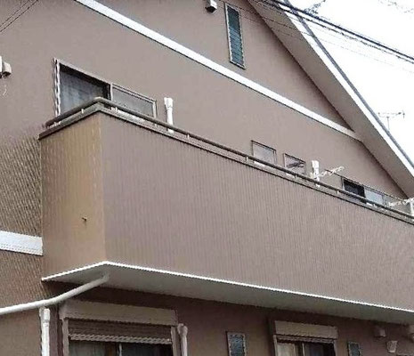 ベランダの手すり格子は経年劣化で塗装が剥げてきていました。既存の手すり格子は塗装を行い、強度の関係上もあり塗装した柱の内側に新しいアルミフェンスを取り付けました。