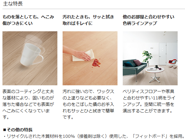 -フォレスティアは傷や汚れが付きにくい、天然木化粧の床材です-