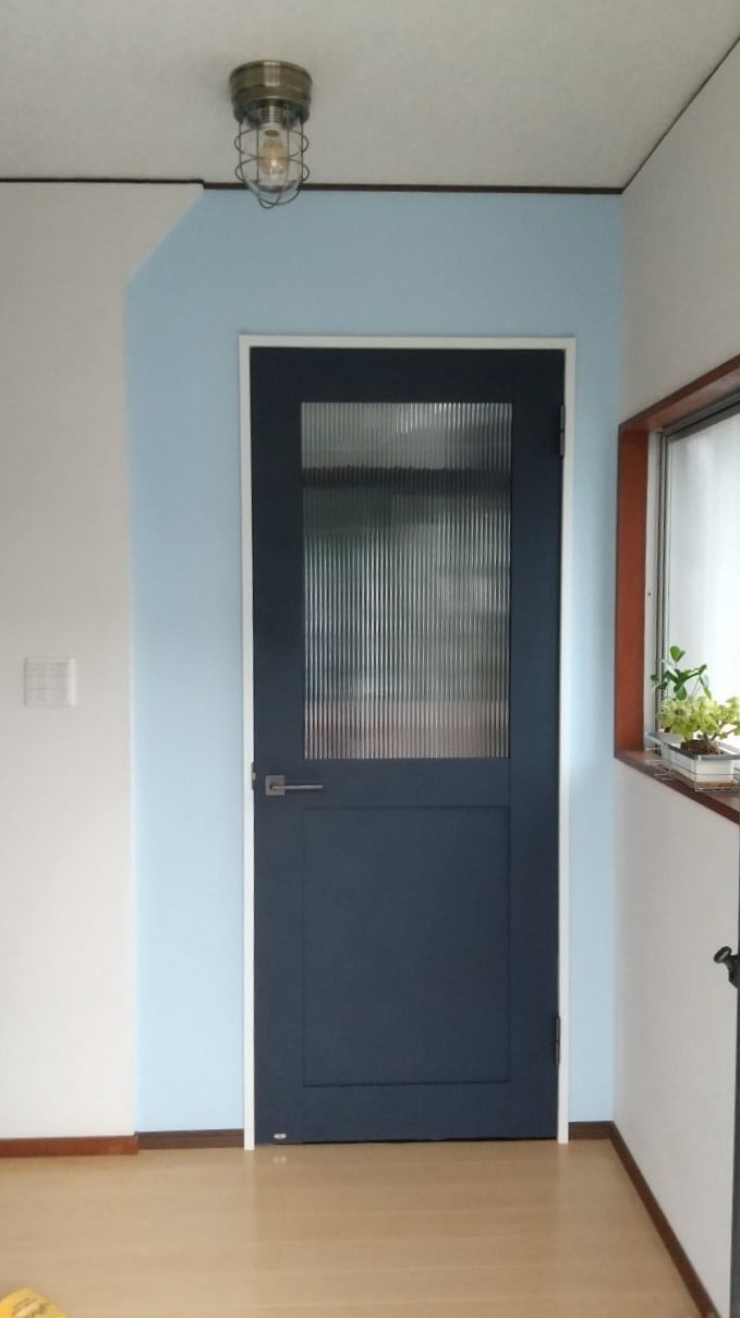 和室全体の木枠カラーをお客さまの希望で濃い青(写真では黒にみえますが....)にしました。シックなイメージになり旦那さまの大好きな音楽が楽しめる空間になりました。