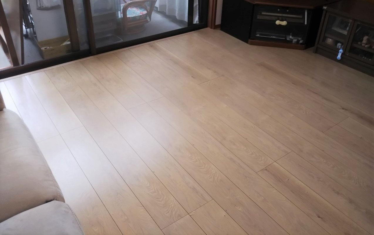 今回のお宅の場合は現地調査の結果、現行のフローリングの上に12mmの上張りを施すことで解決できることがわかりました。