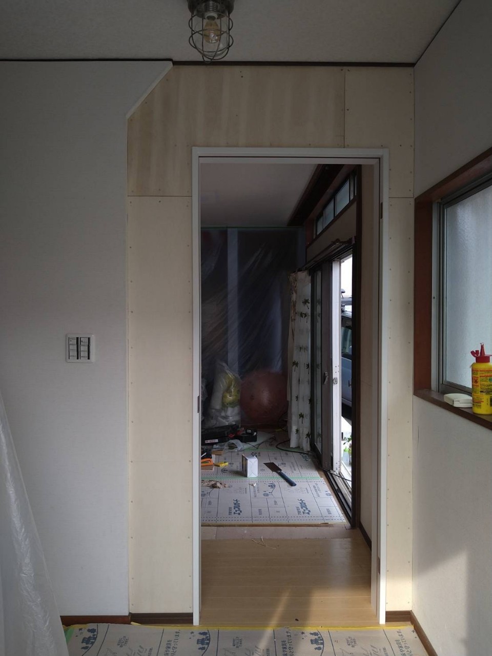 上張りをすると家具類やドアと干渉することもあるため、建具の調整や採寸をしながら確認したところ問題ありませんでした。