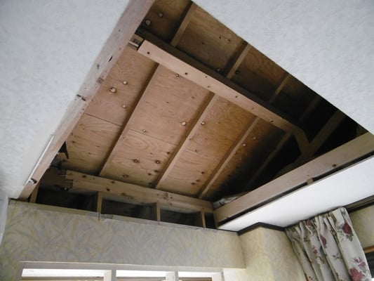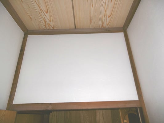 小動物が入り込まないよう工事をしたうえで、既存の天井を解体し新しくジプトーンを張りました。