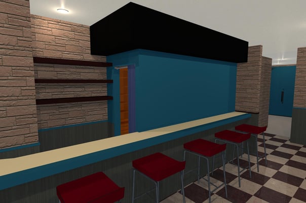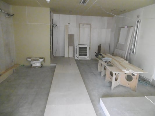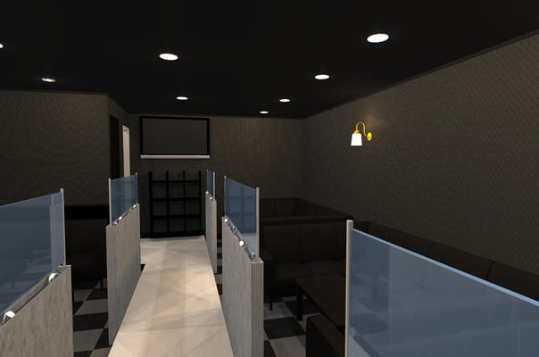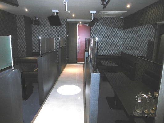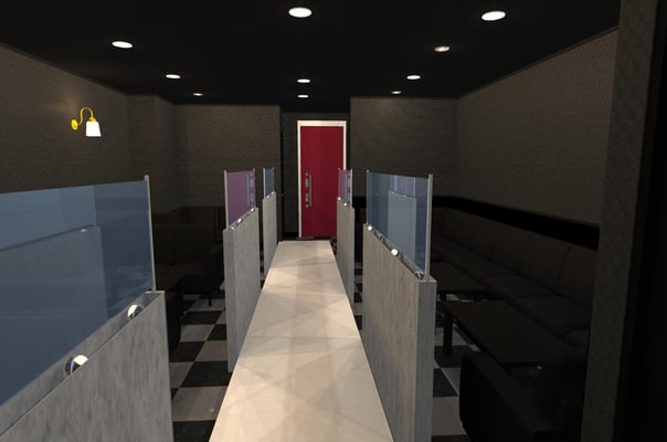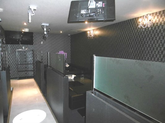 空き店舗を、CLBUに改装しました。打合せは、イメージ図を作成し提示したことで、スムーズにお話を進めることができました。リフォーム前は、仕切りもなにもない部屋だったのですが、ワンフロアをうまく仕切り、奥に厨房、トイレ、入口横に更衣室、化粧室をホール中央にはステージを作りました。ステージ横には、パーテンションを造作し、素敵な空間に仕上りました。