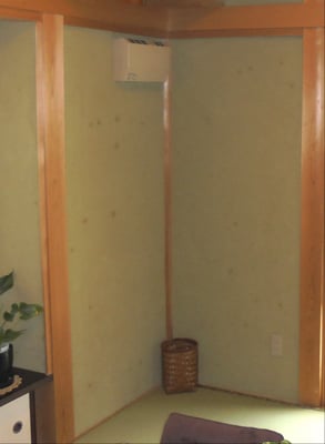 和室の壁には経年劣化による汚れやカビの発生などがでており、和室に調和するクロスを張替えました。
