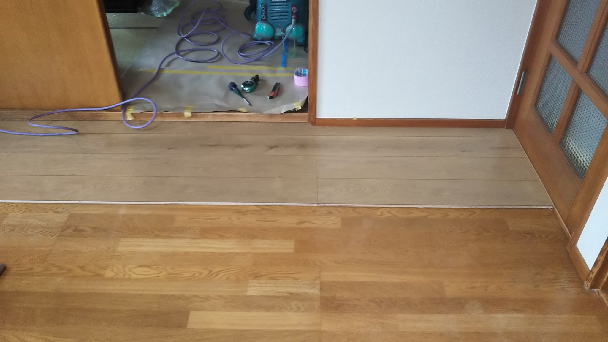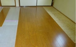 洋間とキッチン部屋の床を新しい床材で貼りました。