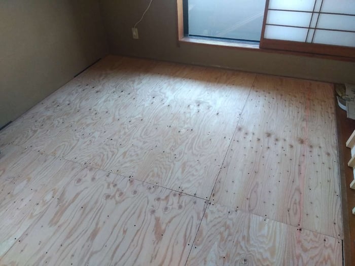 コンパネを張ります。(床の強度、安全性を高めます。)