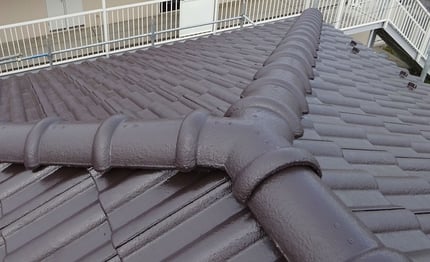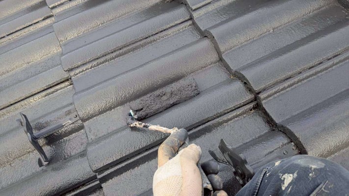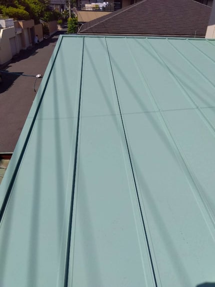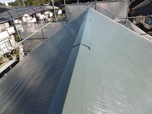 遮熱塗装で仕上げました。屋根には、所どころに苔が付着していました。丁寧に高圧洗浄をし、下塗り→中塗り→上塗仕上げとなりました。