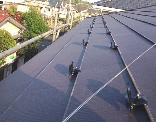 お屋根に雪止めを取り付けます。