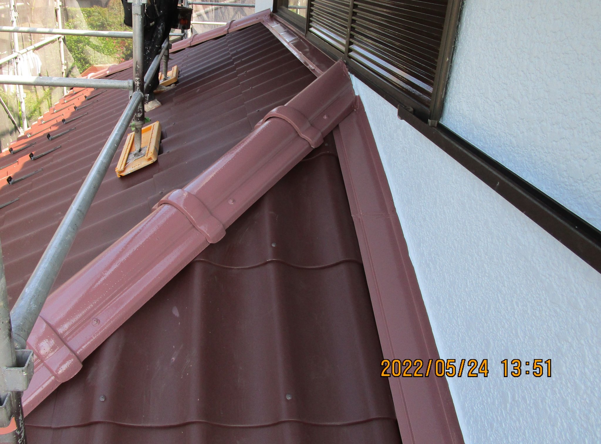 天候の影響で伸びましたが、着工から完工まで実質の作業日は6日間と施工が早く止水性の優れた屋根部材を取り付けました。