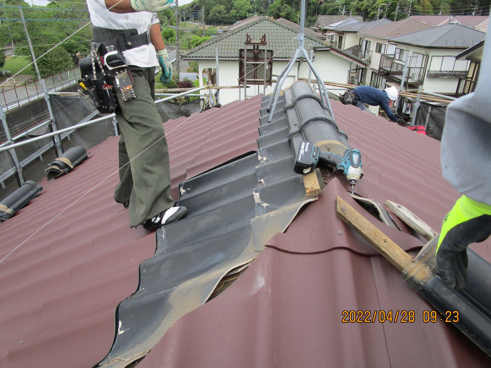 屋根の状態を施主様と確認し、今回は屋根の棟部を取り直して改修するとこになりました。